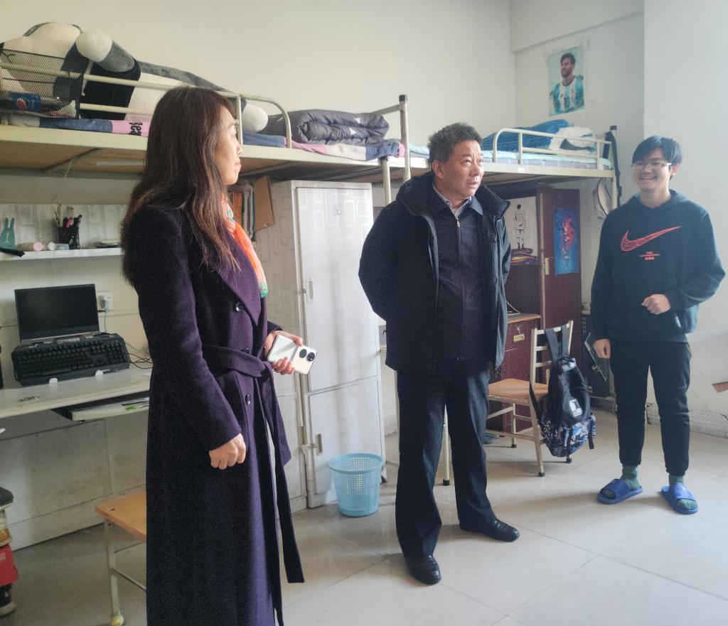 每到一间宿舍,来兴平与员工深入交流,详细了解员工学习、生活情况,尤其是在课程学习、校园生活、学涯规划等方面的困惑与需求。他鼓励同学们要融入集体,建立和谐融洽的人际关系,相互包容,相互尊重,共同营造团结和谐、其乐融融的宿舍氛围;激励同学们要抓住机遇,做好老员工涯规划,珍惜大学美好时光,努力学习钻研,提升自身能力,不断实现自我增值;叮嘱同学们要注意身体健康,平衡好学习、工作和生活的关系,遇到困难多与老师们交流反馈;嘱咐同学们要增强安全防范意识,养成勤打扫、勤整理的良好习惯,保持宿舍干净整洁,创建积极向上的宿舍文化,以良好的舍风促进学风建设。