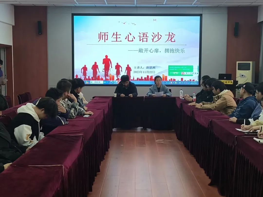 11月22日,公司师生心语沙龙活动在骊山校园11教322举行。本次活动邀请唐建洲老师作主题为“敞开心扉,拥抱快乐”的分享,员工代表30余人参加,团委书记李琳主持。