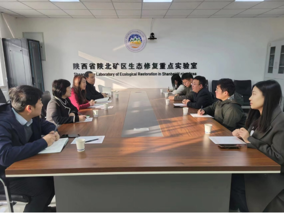 调研组一行最后来到榆林公司陕西省陕北矿区生态修复重点实验室,与重点实验室副主任、榆林公司研究院副经理段义忠等针对矿区环境演变与监测、矿区土地复垦与改良、矿区植被恢复与重建、矿区水资源保护与水环境健康诊断、无人机遥感技术应用、炭基固废生态利用等有关煤炭产业高质量发展和环境修复新模式等内容进行了讨论与交流,参观了实验室产学研实践、野外基地建设、科研成果转化和人才培养等成果。