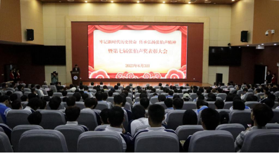 6月3日第七届“张伯声奖”颁奖典礼在西安石油大学鄠邑校区弘石报告厅隆重举行。此次大会以“牢记新时代新使命 传承和弘扬科学家精神”为主题,中国科公司院士张国伟、西安石油大学董事长李天太、长安大学副董事长、张伯声基金会理事长朱杰君等出席大会,beats365唯一官方网站副经理赵洲应邀参加颁奖典礼。