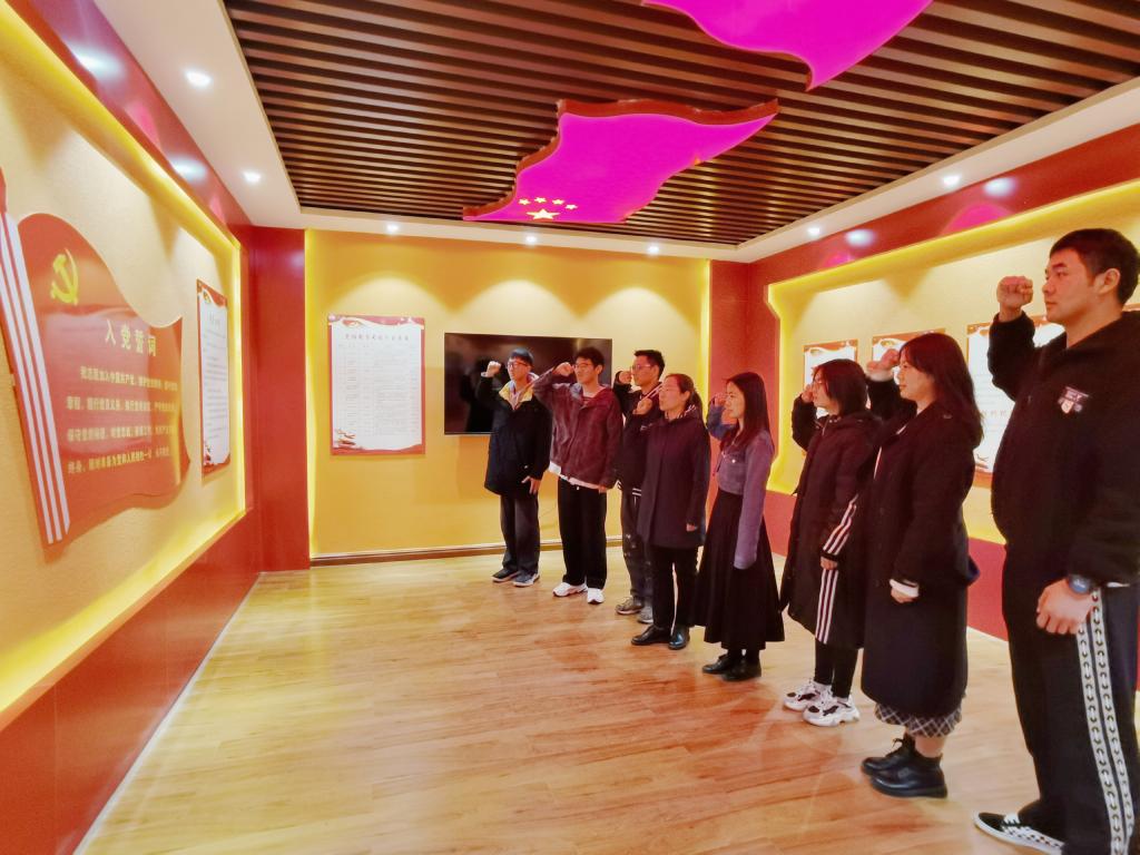 最后,在党性体验中心,师生们重温了入党誓词,以铿锵有力的声腔表达了自己对党的热爱。庄严的誓词时刻提醒每位党员不忘入党初心,牢记党员身份,践行党的宗旨和使命。