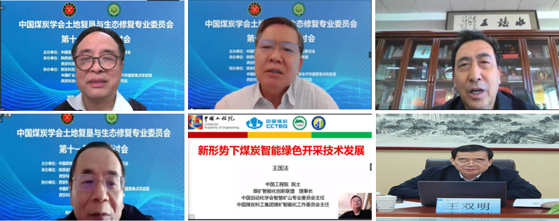 开幕式后,中国工程院彭苏萍院士、袁亮院士、武强院士、康红普院士、王国法院士、王双明院士分别从煤炭资源禀赋和双碳目标战略视角做了题为《西部干旱半干旱露天煤矿生态重构关键技术及战略思考》、《高潜水位采煤沉陷区综合治理与资源-能源-功能化利用》、《绿色矿山与矿山环境问题》、《煤矿绿色开采及固废处置技术》、《新形势下煤炭智能绿色开采技术发展》及《双碳目标与主体能源变化》特邀主题报告,为我国东部和西部煤矿区,井工矿和露天矿区的土地复垦与生态修复指明了方向。
