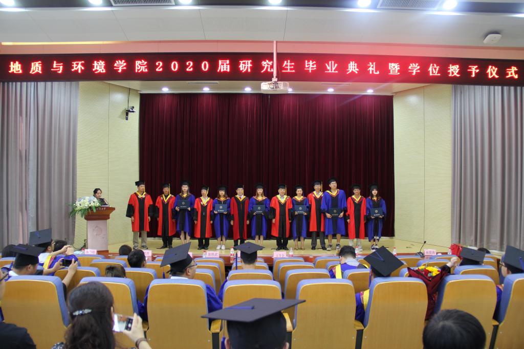 毕业典礼在雄壮的国歌中开始,校学位委员会委员、研究生院常务副经理侯恩科教授宣读2020届研究生毕业及学位授予决定,公司党委书记赵雪萍老师宣读优秀毕业生和优秀学位论文获得者表彰决定。2020届毕业生代表薛圣泽,在校生代表陈莹、导师代表陈应涛系主任进行了发言。