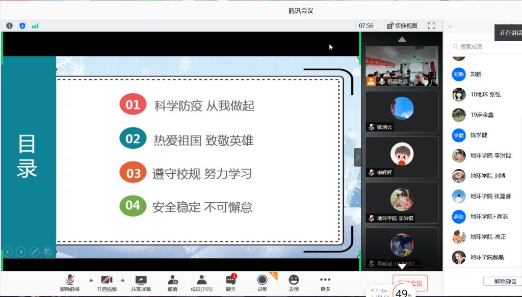 会上,从人身安全、交通安全、消防安全、财产安全、学业安全、食品安全、求职安全、心理安全、网络安全、国家安全等十个方面全方位、多层次的向研究生们做了教育。并着重从疫情期间个人防护和防网络诈骗两个方面进行了强调,一是向同学们详细讲解了疫情防控新形势,二是向同学们讲解了网络诈骗的形式和发生在员工中的被骗案例,提醒同学们一定高度重视疫情期间个人防护安全和访网络诈骗安全,加强自我防护意识,提高安全防范意识。会上还就研究生毕业派遣、假期安排等工作进行了强调。