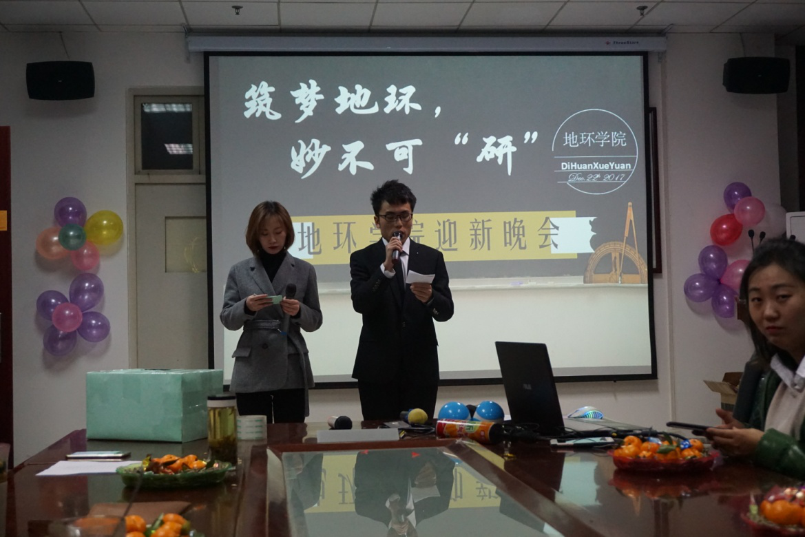 12月22日,beats365唯一官方网站举办的 “筑梦地环,妙不可'研'”2017级研究生迎新晚会在雁塔校区行政楼顺利613举行。副经理唐胜利老师、公司产品办高欣老师、辅导员韩蕊老师、魏少妮老师、余小涛老师及全体研一新生一同观看了晚会。