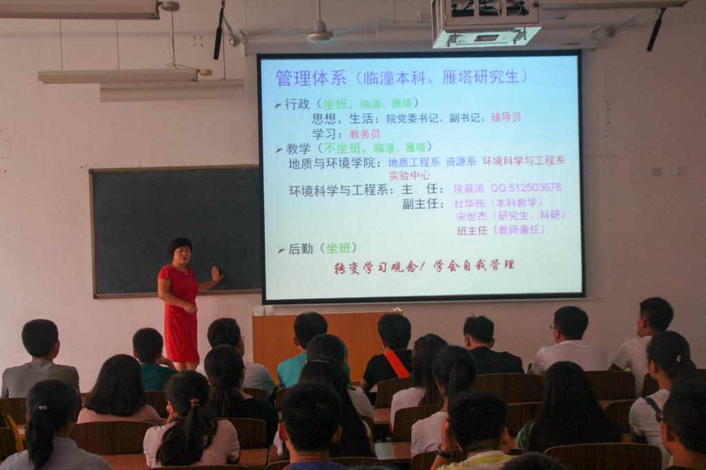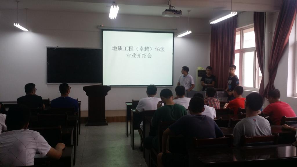 会后,副经理孙学阳、地质工程系主任邓念东、环境工程系主任侯晨涛、资源勘查系副主任陈应涛,分别向同学们进行了专业介绍。