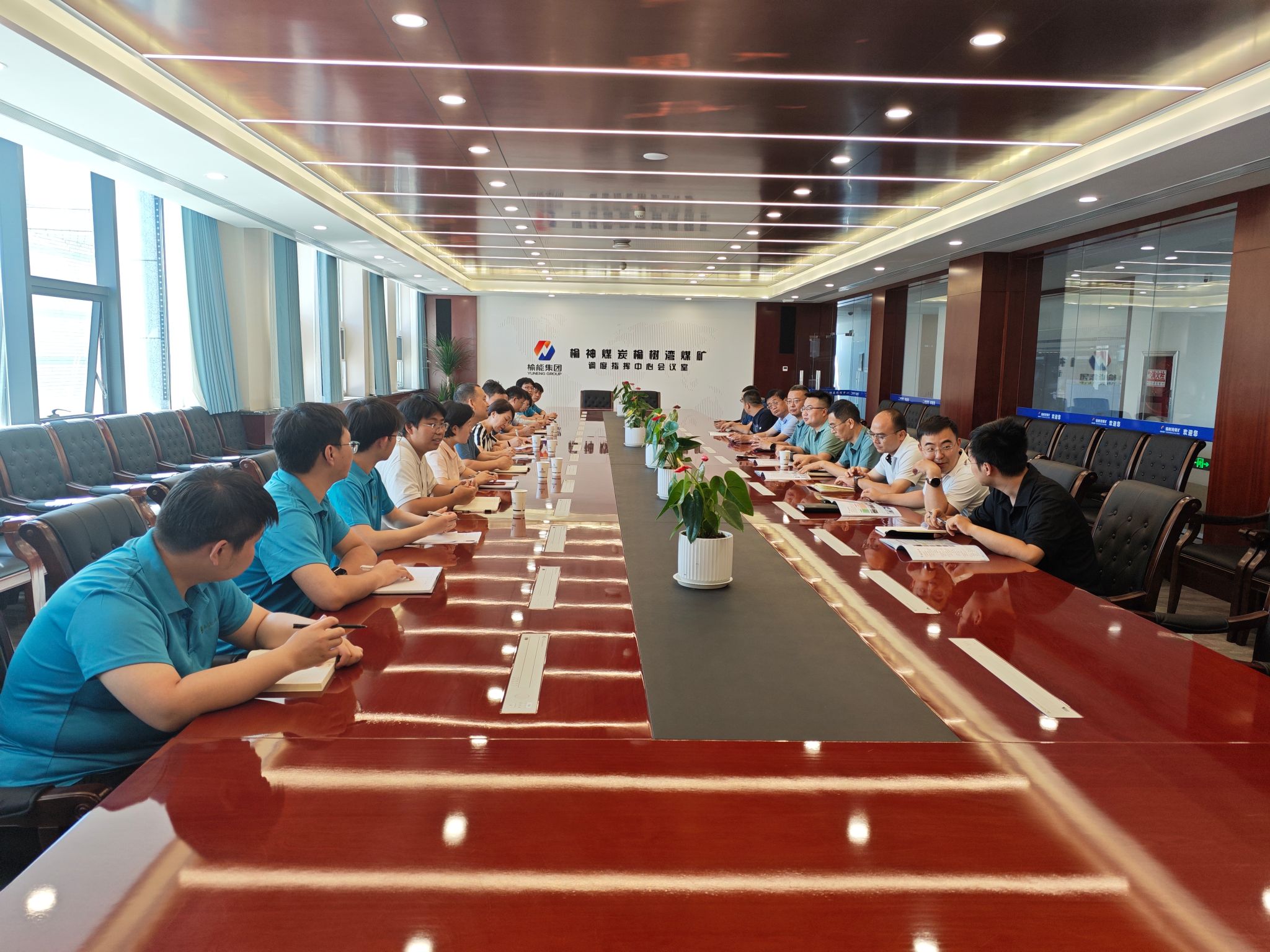 7月17日,公司党委书记赵雪萍带队赴榆林市榆神煤炭榆树湾煤矿有限公司开展访企拓岗活动,公司党委副书记刘训明、副经理赵洲、地质工程系主任马建全、公司团委书记李琳、辅导员余小涛、周佳瑞及员工代表一行14人参加活动,榆树湾煤矿相关部门负责人参加活动。