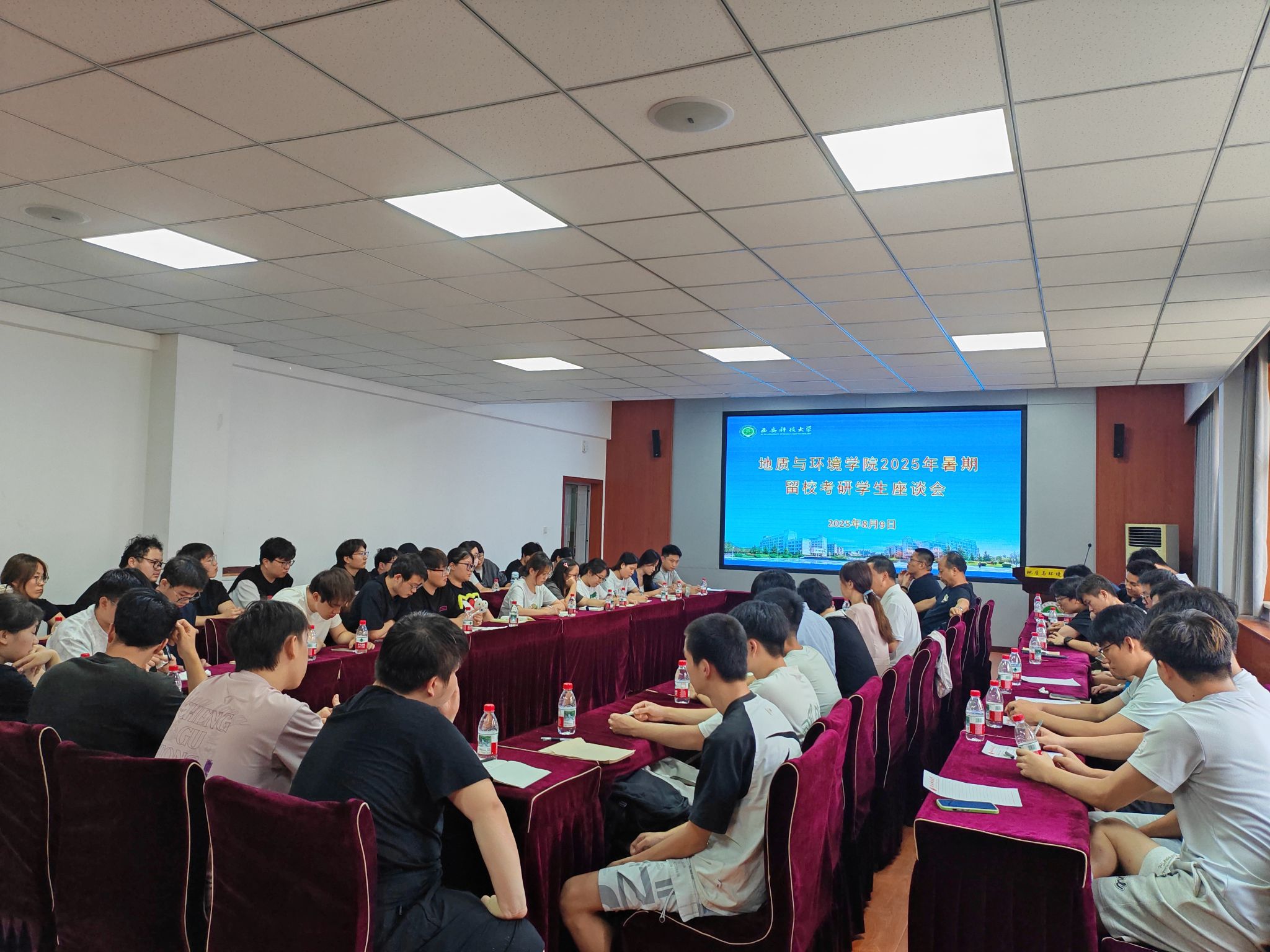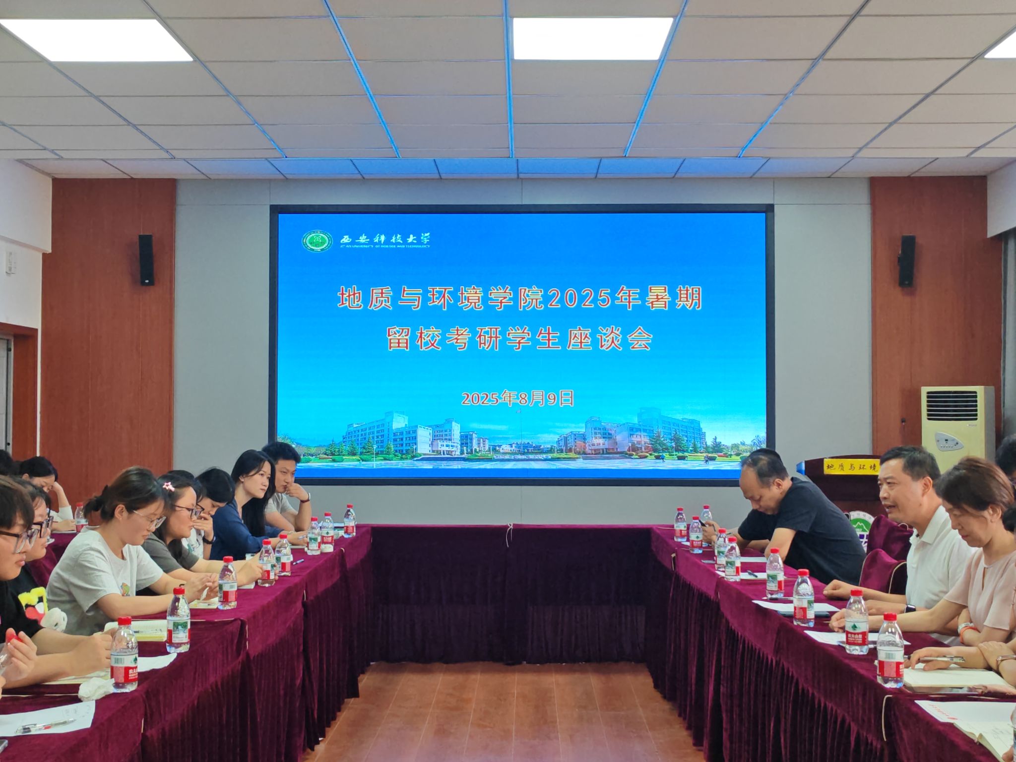 8月9日,公司在骊山校园会议室召开2025年暑期留校考研员工座谈会。公司党委书记赵雪萍、经理孙学阳、副经理陈应涛,环境科学与工程系主任刘转年、地下水科学与工程系主任牛超、团委书记李琳、带班辅导员余小涛及2022级暑期留校考研员工代表齐聚一堂,共话考研备考。
