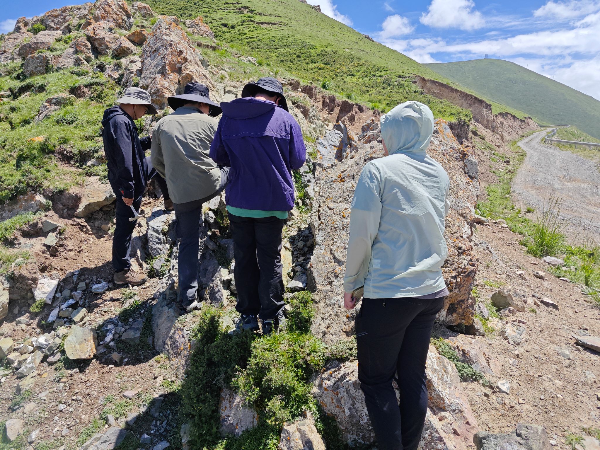 在133 队的协助下,小分队前往甘肃省景泰盆地开展三叠系煤炭资源调查学习。团队系统学习了聚煤盆地的煤炭勘查方法,通过野外剖面测量、地质路线调查、露头样品采集等手段,深入了解景泰盆地的构造 - 沉积演化过程,为当地煤炭资源的开发与利用提供了重要的一手地质资料。