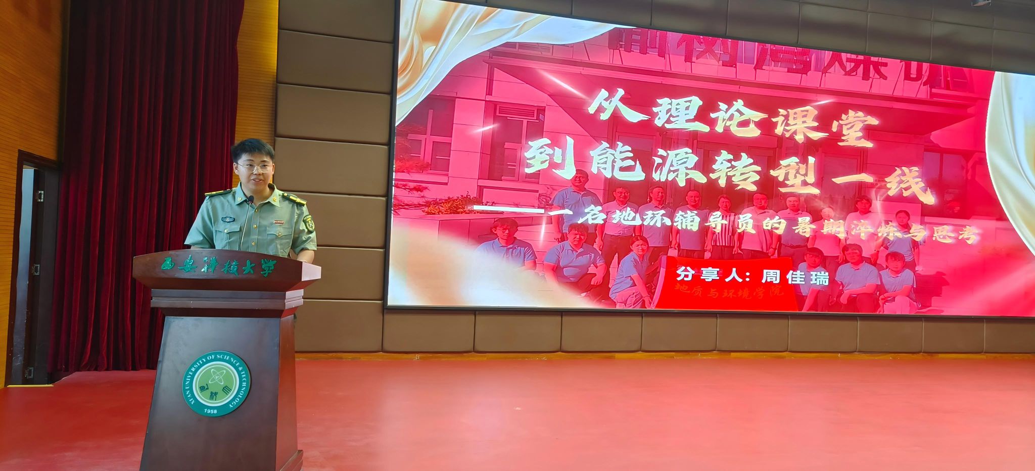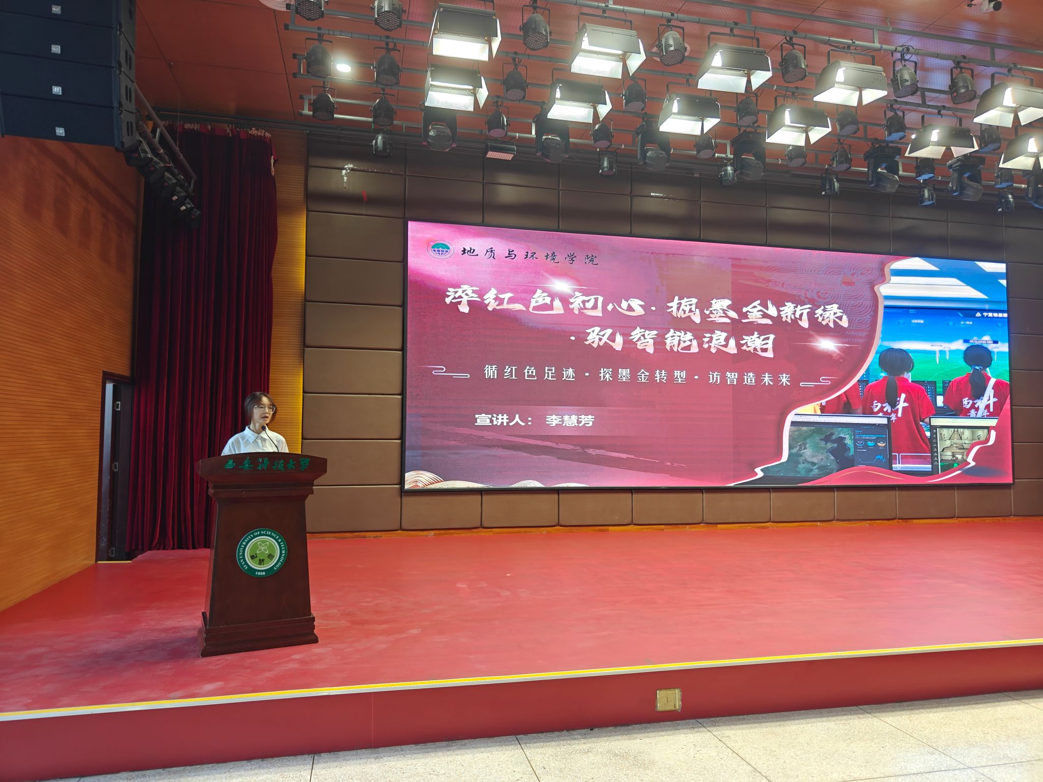 环境工程2401 班李慧芳同学以“淬红色初心,掘墨金新绿,驭智能浪潮”为主题,分享了校“薪火链动,智创煤海”青马工程实践团赴延安、西北能源基地及人工智能创新示范区开展社会实践的经历。实践中,成员们通过红色寻根、能源转型调研与智能技术考察,深刻感悟初心使命,深化专业认知,坚定绿色发展信念。实践团表示,将勇担时代责任,以科技与创新助力美丽中国建设,为实现中华民族伟大复兴贡献青春力量。
