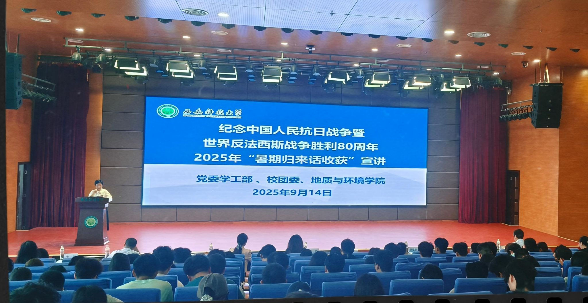 9 月 14 日上午,公司在骊山校园煤炭科技中心一层报告厅举办 2025 年“暑期归来话收获”宣讲活动。校团委书记高欣,公司党委书记赵雪萍、学工部副部长薛建航、马克思主义公司党委副书记韩帅、公司党委副书记刘训明、马克思主义公司团委书记李超、学工部员工教育科科长白生宝、校团委宣传部部长吴行健,公司全体辅导员及 500 余名员工代表参加活动,活动由公司团委书记李琳主持。