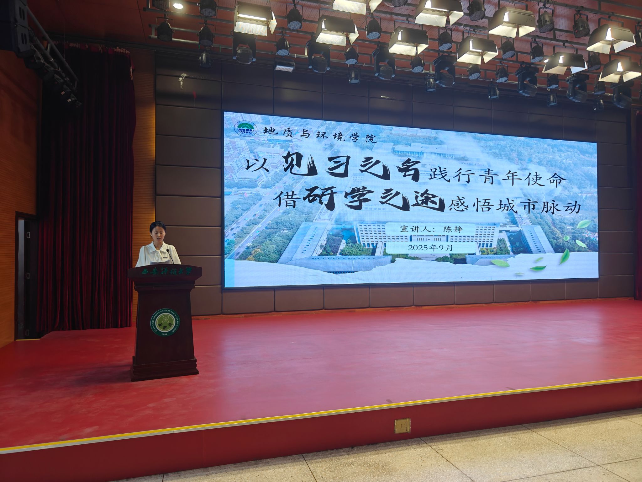 地质工程2302 班陈静同学以“以见习之名践行青年使命、借研学之途感悟城市脉动”为主题,以 “解码者”“探索者”“传播者” 三重身份,完成与西安的深度对话。在西安市地震局,她将专业数据转化为城市安全“预警密码”;通过 “青年看西安”活动,从规划馆千年轴线到陕汽智能生产线,触摸城市发展脉搏;地铁志愿服务中,她以“小红花”温暖来客。这段见习经历,既是专业技能的锤炼,更是青年与城市共同成长的注脚,每一次实践,都在为未来谱写更精彩的乐章。