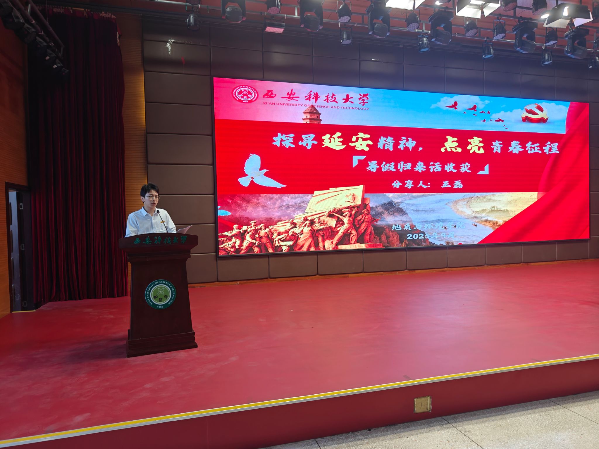 2025 年是中国人民抗日战争暨世界反法西斯战争胜利 80 周年,马克思主义公司红言宣讲团成员以 “烽火堡垒铸魂,薪火相传奋进”为主题,以陕甘宁革命根据地的奋斗历程为历史脉络,重点解读以 “自力更生、艰苦奋斗”为核心的南泥湾精神,并结合公司的红色基因与办学传统,展现公司与党和国家同频共振的深厚底蕴。宣讲还分享了西科青年深入一线、服务基层的生动实践,激励广大同学立足学科背景,在求知路上坚守信念,在实践磨砺中提升能力,以专业所长服务社会,以实际行动传承红色精神,担当时代使命。