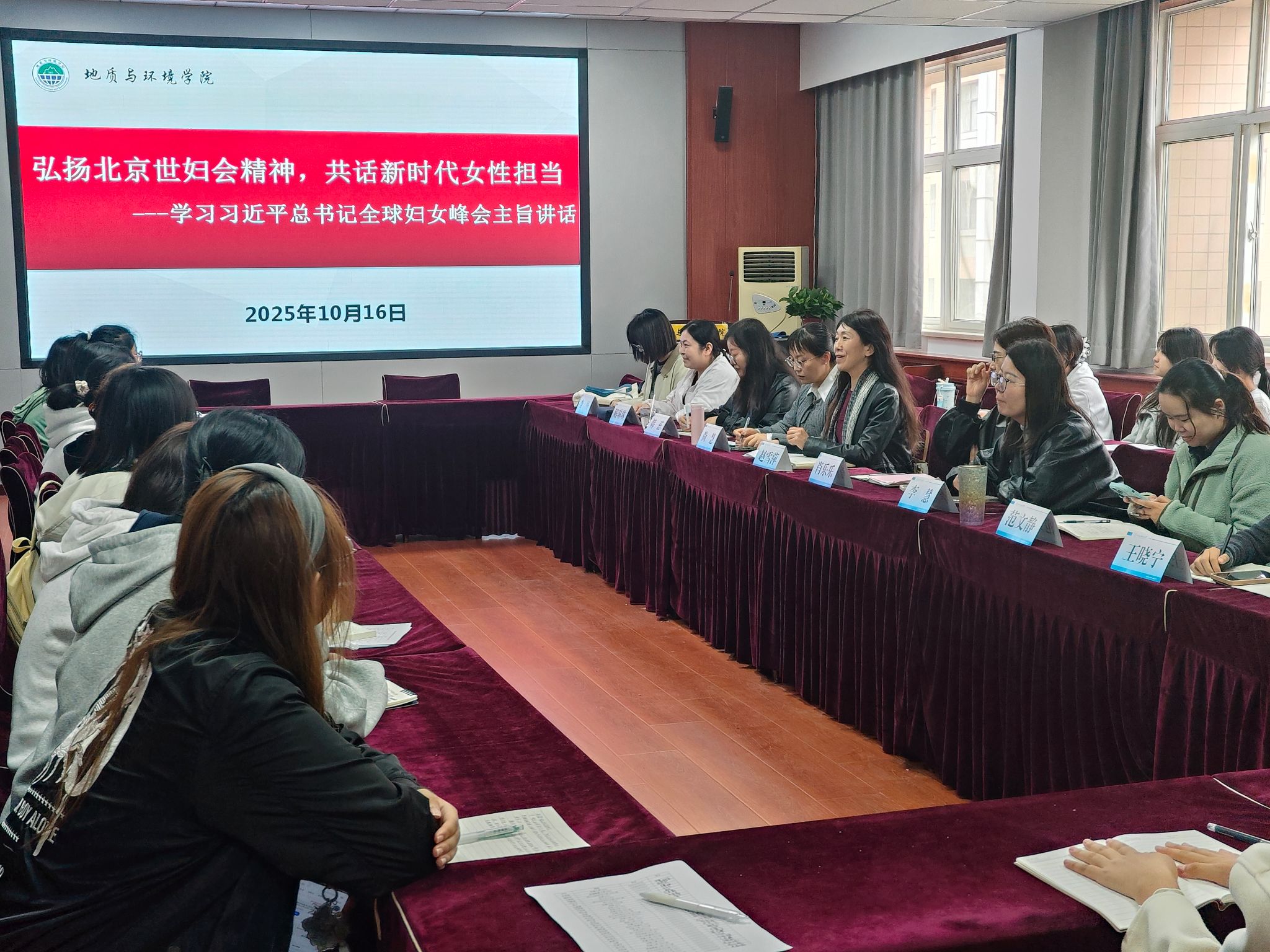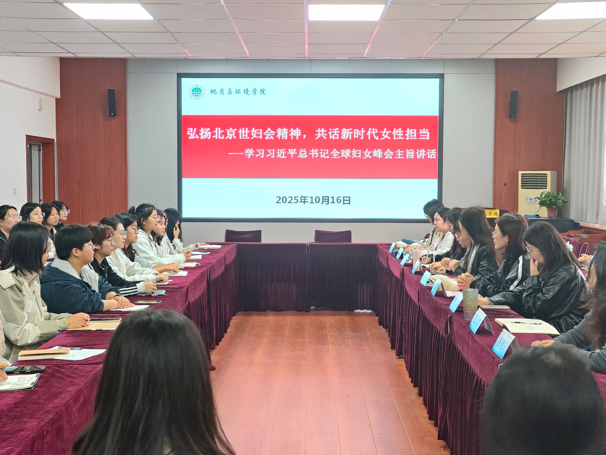 10月16日中午,公司在骊山校园11教322会议室组织开展“弘扬北京世妇会精神,共话新时代女性担当--学习习近平总书记全球妇女峰会主旨讲话”主题座谈会。公司党委书记赵雪萍主持会议,40余名师生代表齐聚一堂,围绕北京世妇会精神传承与新时代女性使命展开深入交流。