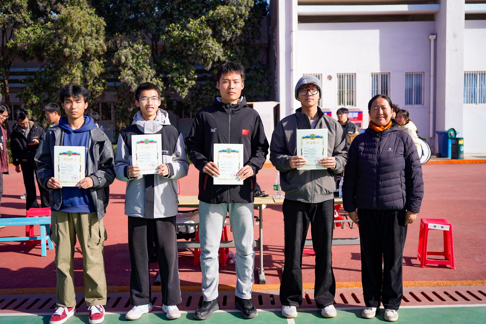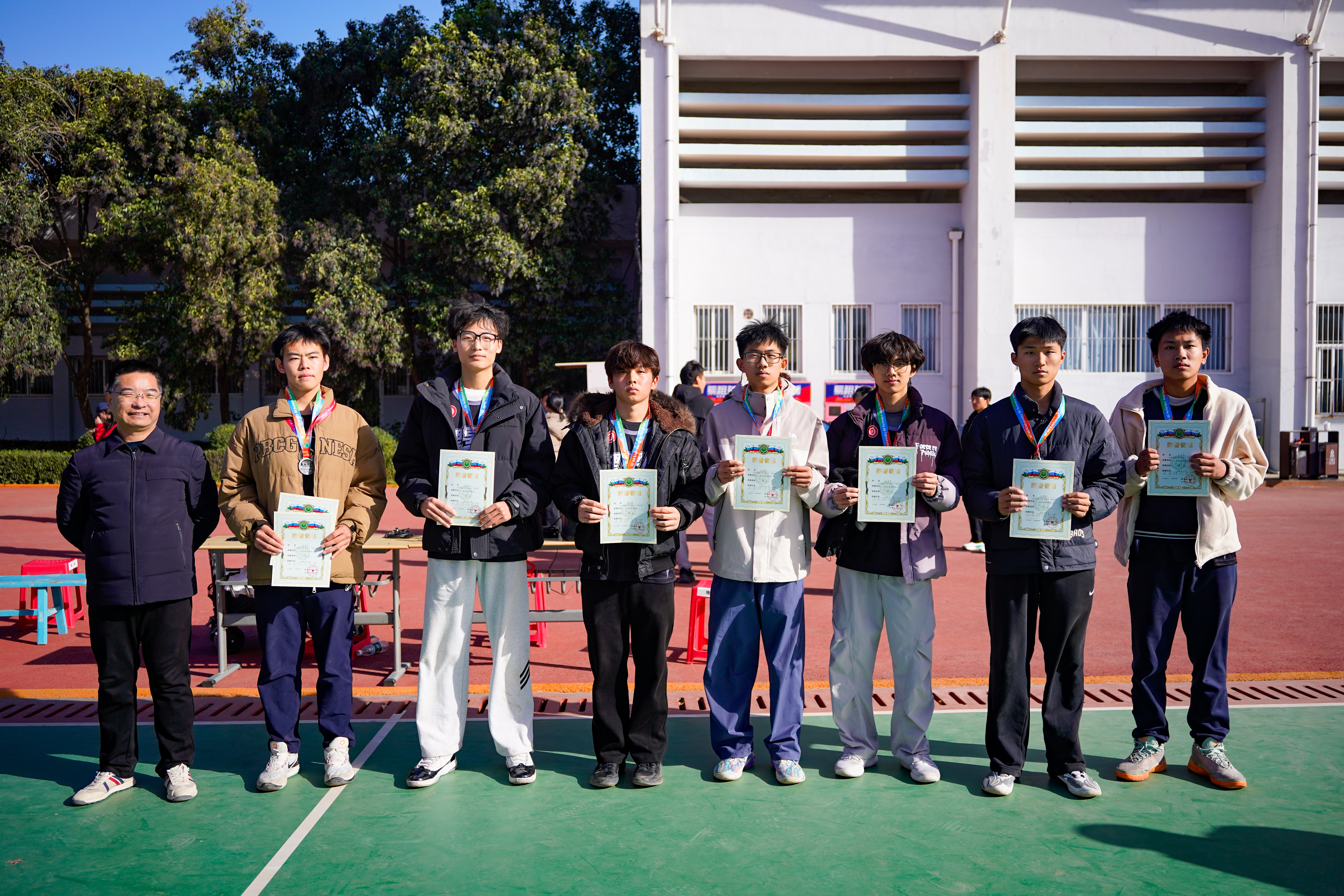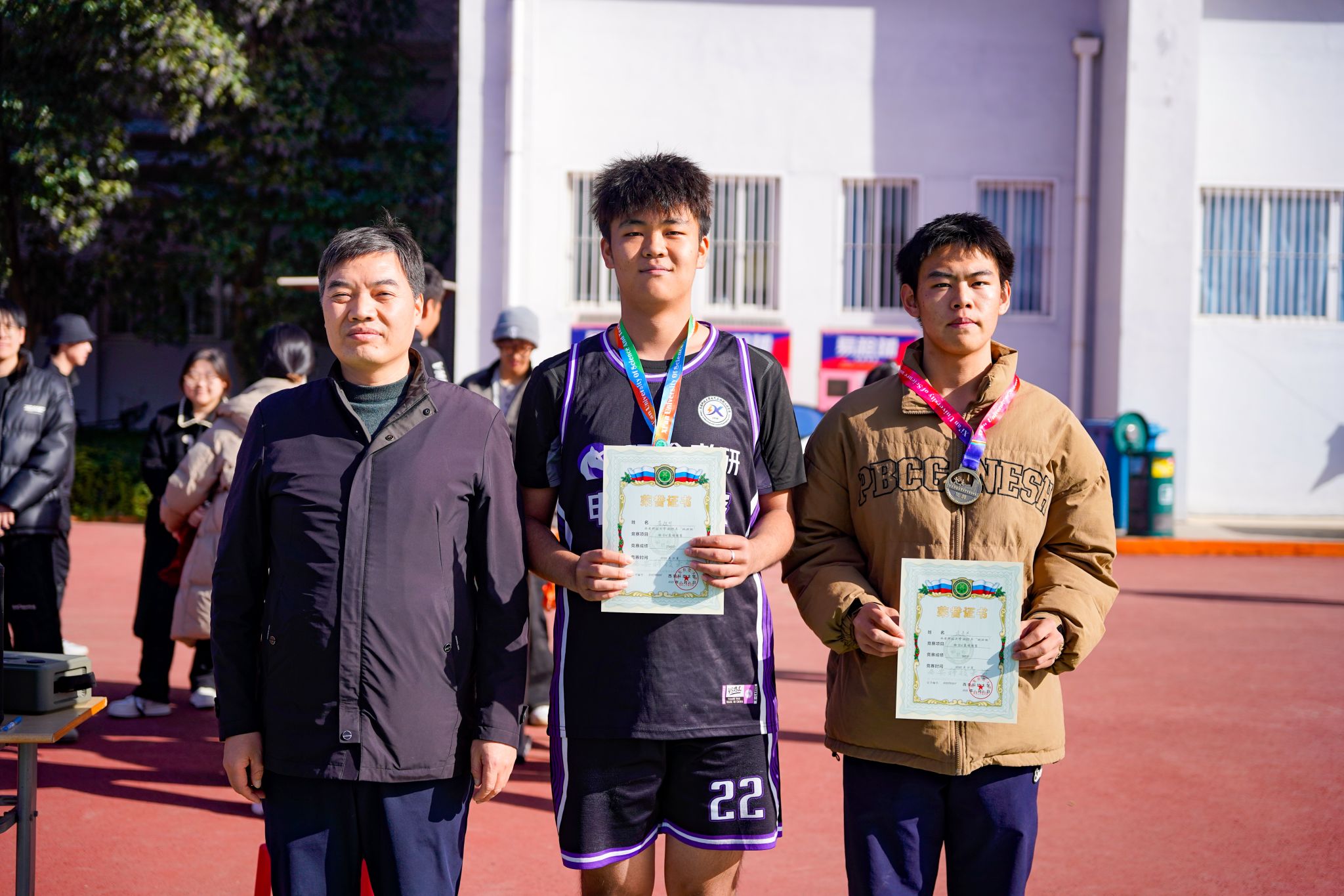颁奖环节中,刘训明为MVP获得者——工程力学2501班余灵杰和FMVP获得者——自动化2501班李旭升颁发荣誉证书。王华、陈伟伯、刘巍、马婧智闻分别为冠军、亚军、季军及第四名代表队——自动化2501班、工程力学2501班、少数民族预科班、矿物加工工程2501班颁奖,田园为获得第五至第八名的队伍颁发了获奖证书。最后,王华宣布本届“地环杯”班BA篮球联赛顺利闭幕。