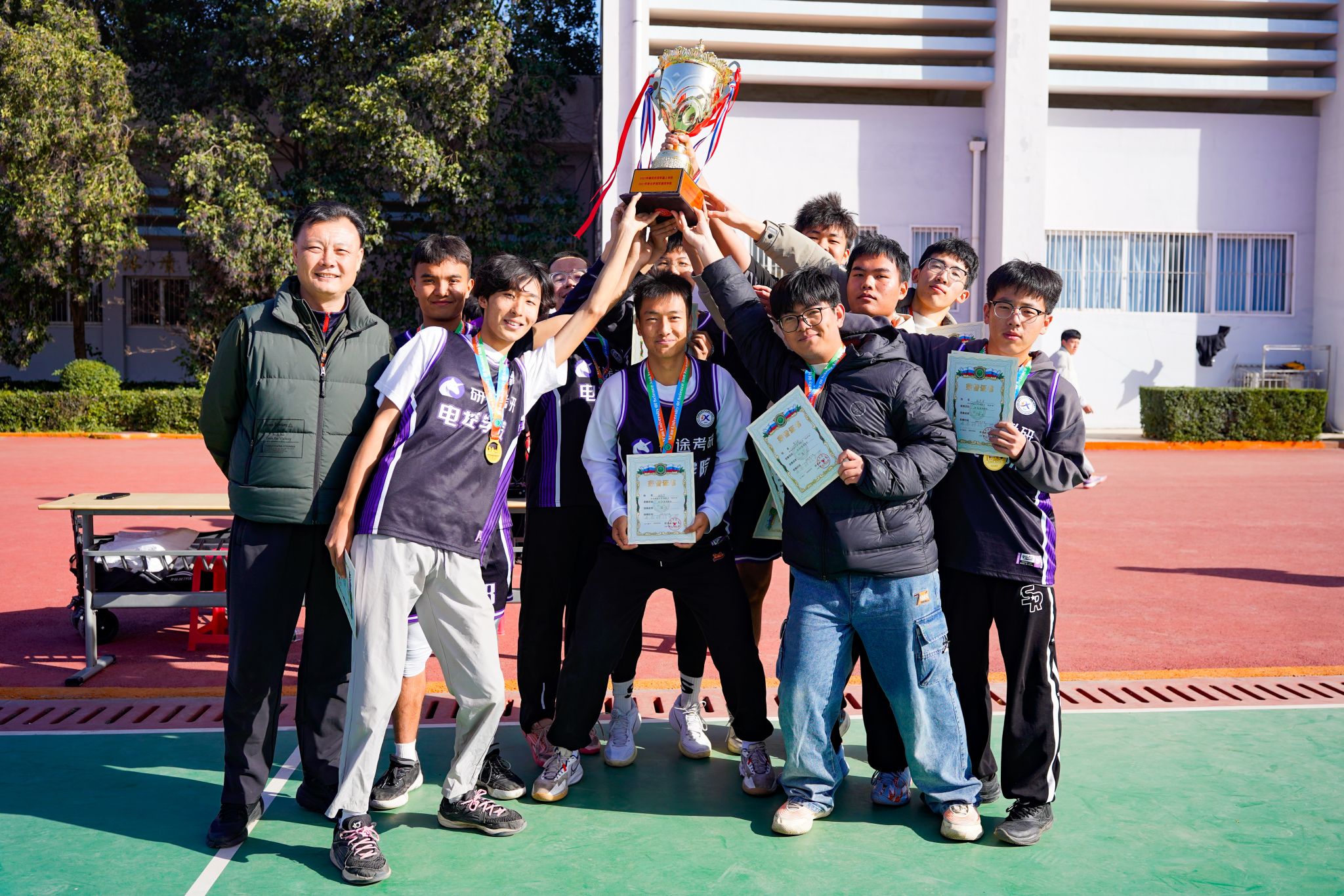 1127日,由公司承办的BEAT365英国官网网站“地环杯”班BA篮球联赛决赛在骊山校园西篮球场精彩上演。电控公司党委书记杨华、体育部主任王华、副主任刘巍,电控公司党委副书记马婧智闻、化工公司党委副书记田园、理公司党委副书记陈伟伯、​公司党委副书记刘训明,以及相关公司辅导员、班主任与员工代表共同到场观赛。